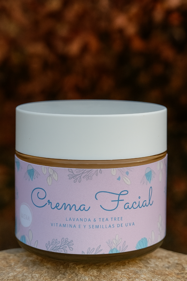 Nuestra Crema Facial Hidratante y Regeneradora con Vitamina E 💧, Aceite de Rosa Mosqueta 🌹 y Aceite de Almendras 🌰 nutre y revitaliza tu piel. Su fórmula natural ofrece hidratación profunda 💦, promueve elasticidad y suavidad ✨, mientras que el delicado aroma a Lavanda 🌿 y Tea Tree 🌱 te brinda una experiencia aromaterapéutica única. Ideal para un cuidado libre de químicos agresivos ❌.
